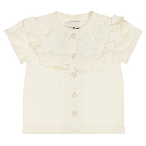 This girls t-shirt has short puff sleeves and a button-down closure, making it not only beautiful but also pratical.