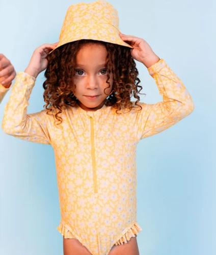 Maillot de bain Swim Essentials manches longues jaune avec des fleurs