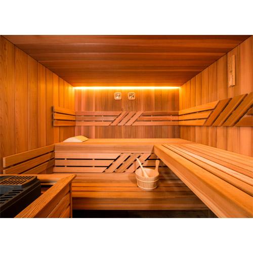 -Indirect LED licht in vals plafond, inclusief saunalamp.