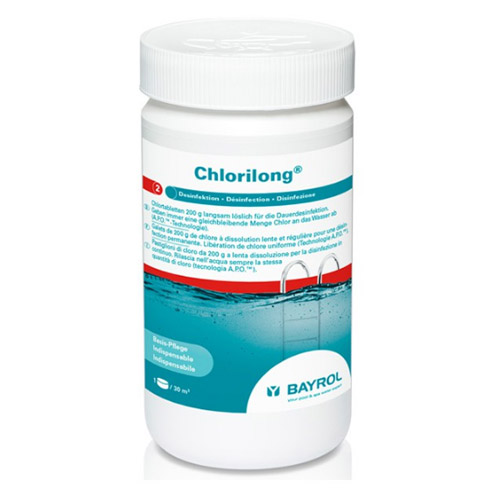Chlorilong van Bayrol gebruiken voor het continu chloreren van het zwembad water.