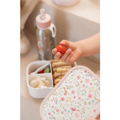 Je kiest eenvoudig wat je kleintje mee wil, vier boterhammen passen moeiteloos, of je gebruikt het uitneembare bentobakje en vorkje voor een gevarieerde lunch.