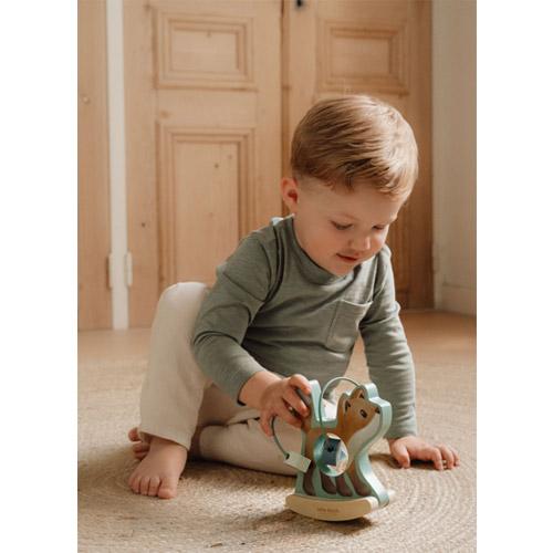 This sweet Wiebeldier not only promotes motor skills in a playful way, but also looks great as a decoration in the nursery.