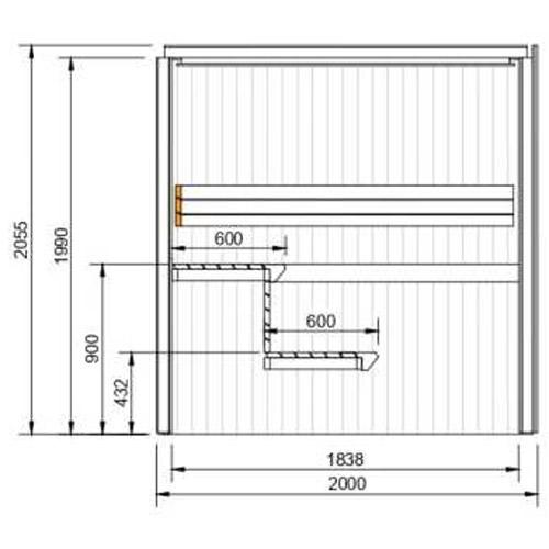 Cabine sauna 220 cm x 200 cm x 200 cm.