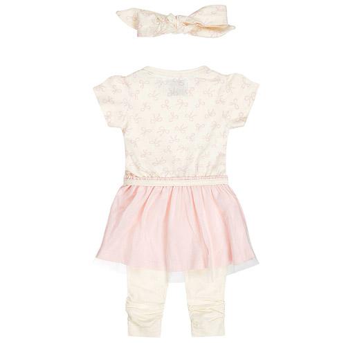 Combinaison Dirkje 3 pièces, robe, pantalon et nœud blanc/rose