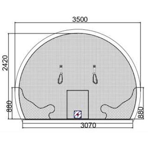Glazen voorwand in dubbel isolerend helder gehard glas in aluminium kader.