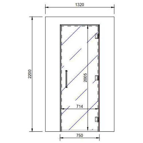 Glasdeur 2005 x 714 mm in 8 mm gehard glas in aluminium frame met luxe scharnieren.