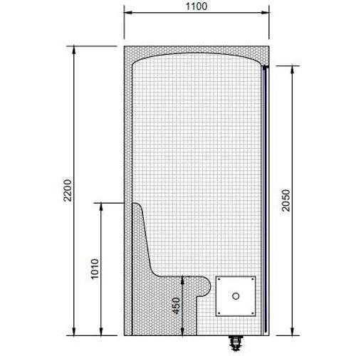 Wanden, plafond en banken, klaar voor tegels en afwerking.