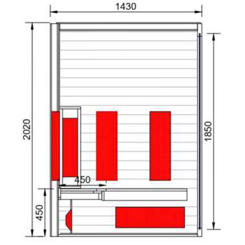 - Heldere veiligheidsglasfront met deur 1790 mm x 691 mm x 8 mm inclusief RVS hang- en sluitwerk.