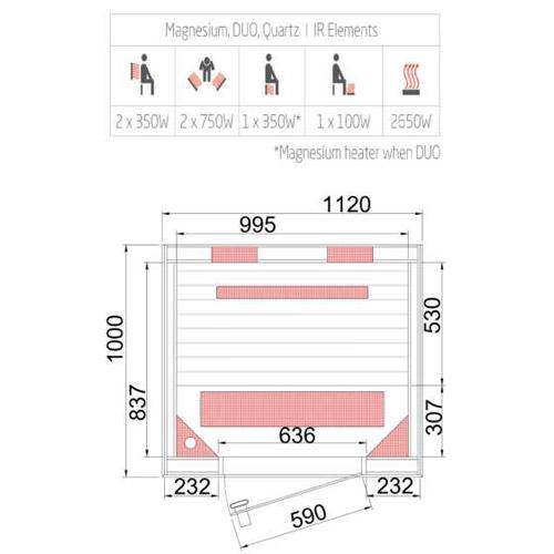 Infrarood cabine CHALEUR 112 cm x 100 cm x 200 cm