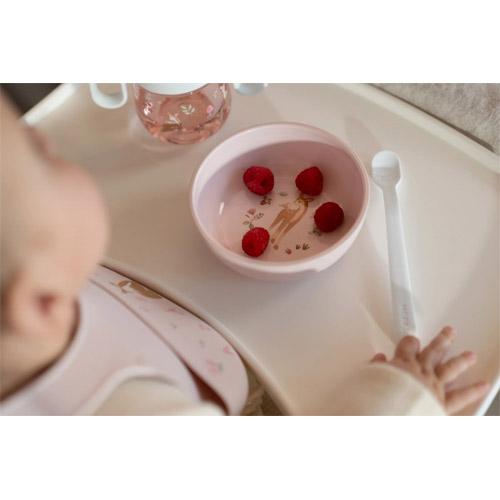Het schaaltje is licht van gewicht, zodat je kleintje gemakkelijk zelf vasthoudt.