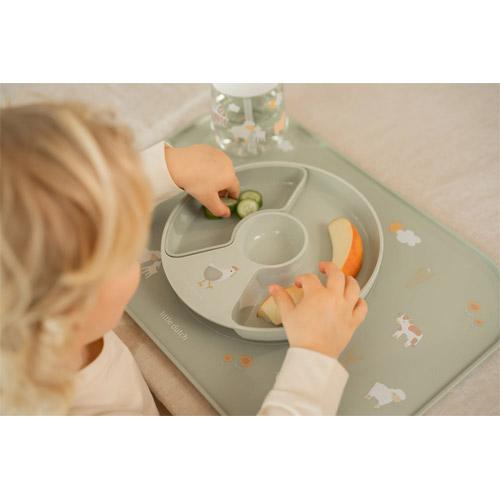 Het Mepal Mio vakjesbord met het vrolijke Little Farm printje van Little Dutch helpt kinderen stap voor stap zelfstandig eten.