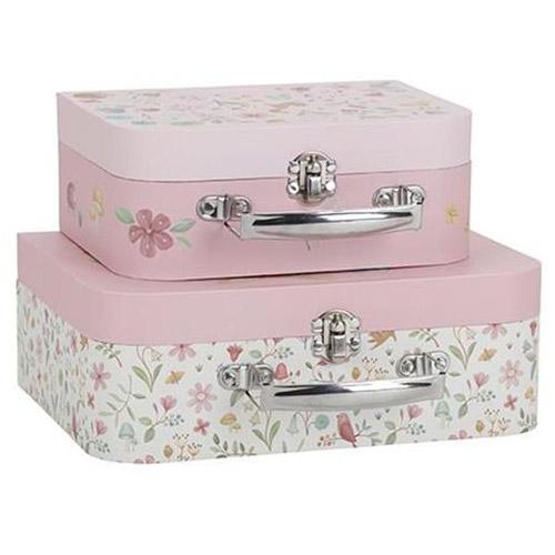 Beide koffers hebben een klassieke metalen greep en slotje, perfect voor kleine ontdekkingsreizigers.