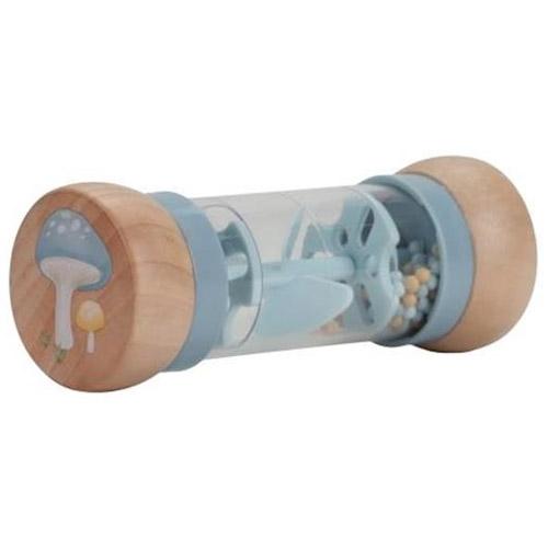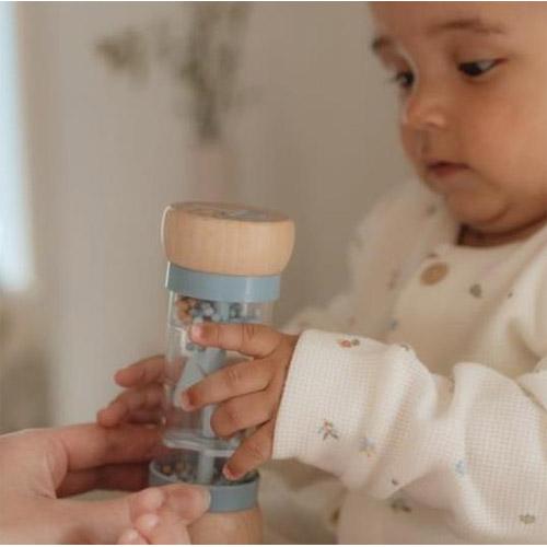 De regenrammelaar is ontworpen voor kleine handjes en ligt lekker in de hand.