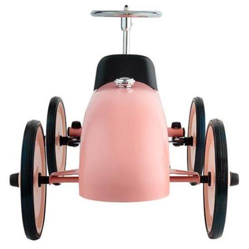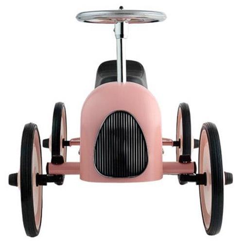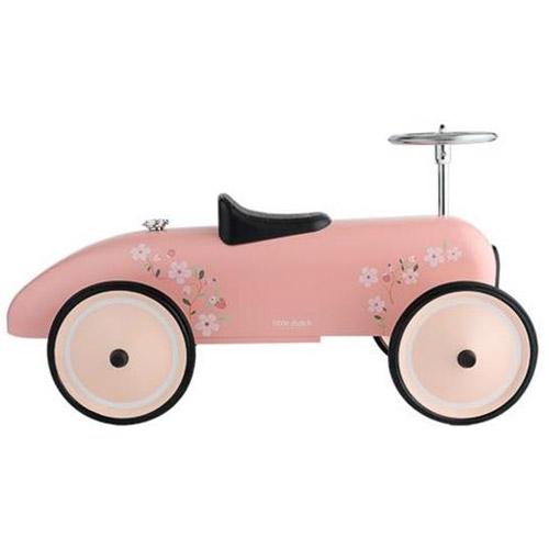 Deze prachtige Little Dutch Retro Roller loopauto in roze kleurstelling is gebaseerd op de stijl van de formule 1 wagens van vroeger.